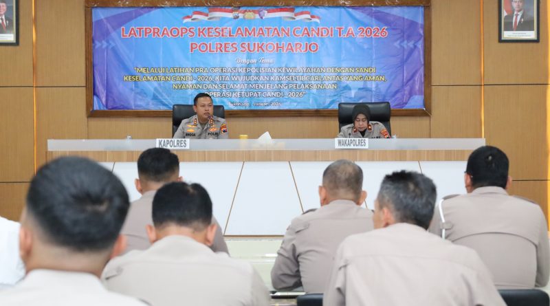 Sukoharjo – Polres Sukoharjo menggelar Latihan Pra Operasi (Latpraops) Keselamatan Candi 2026 di Aula Rupatama R. Koesnadi Polres Sukoharjo, Kamis