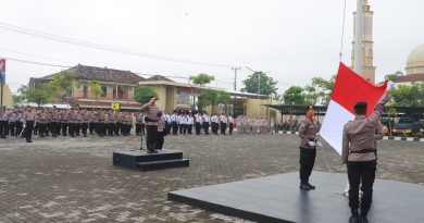 Iptu Sugiyanto memberikan arahan kepada seluruh anggotanya terkait dengan undang undang No 2 tahun 2002 tentang tugas dan wewenang kepolisian.