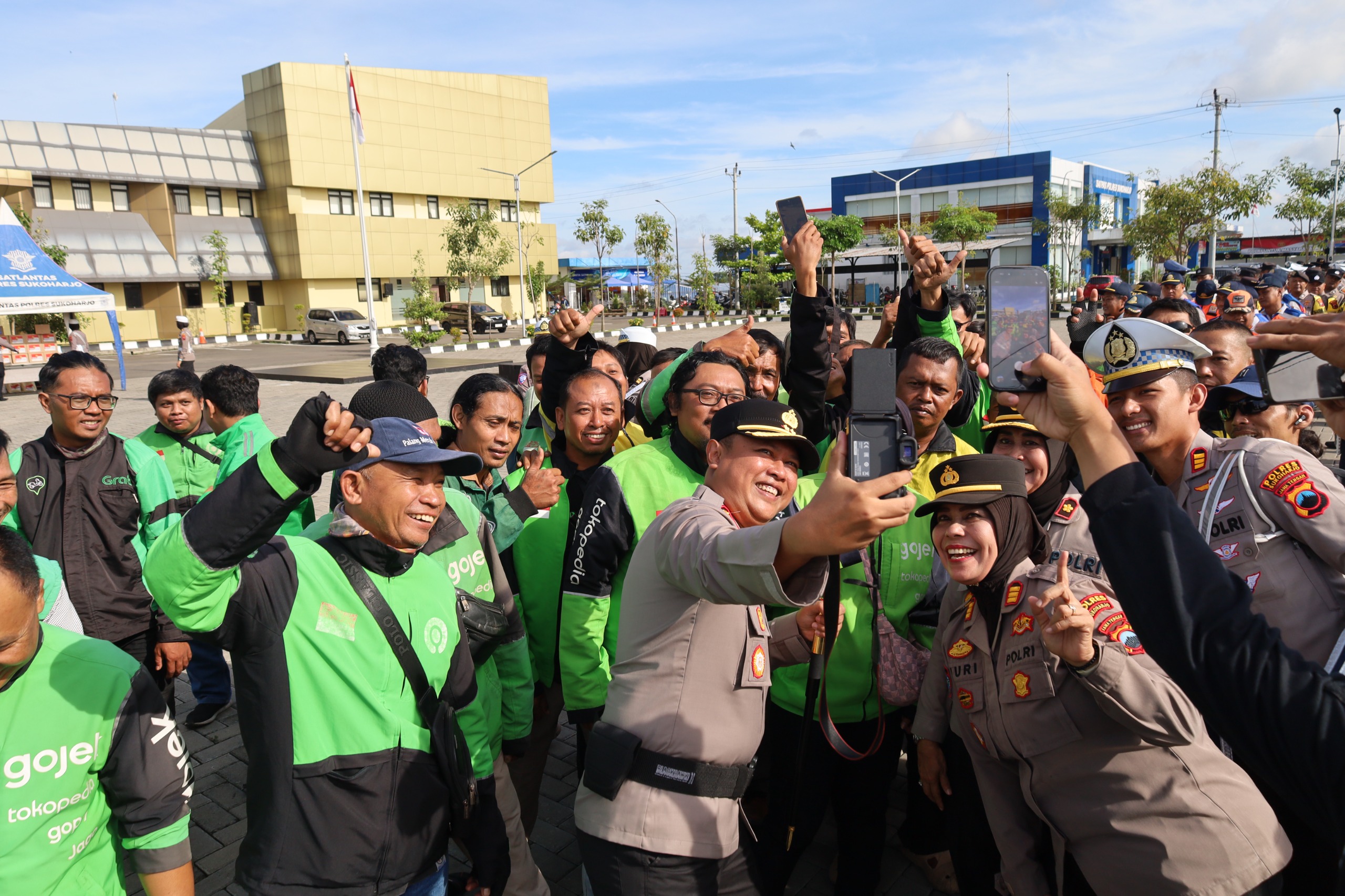 “Aktivitas masyarakat, termasuk ojek online, sangat berkaitan dengan dunia digital. Jika situasi kamtibmas tidak terjaga, maka aktivitas ekonomi dan pendapatan rekan-rekan ojek online juga bisa terganggu. Karena itu, sinergi ini penting agar situasi tetap aman, nyaman, dan kondusif,” jelas AKBP Anggaito.