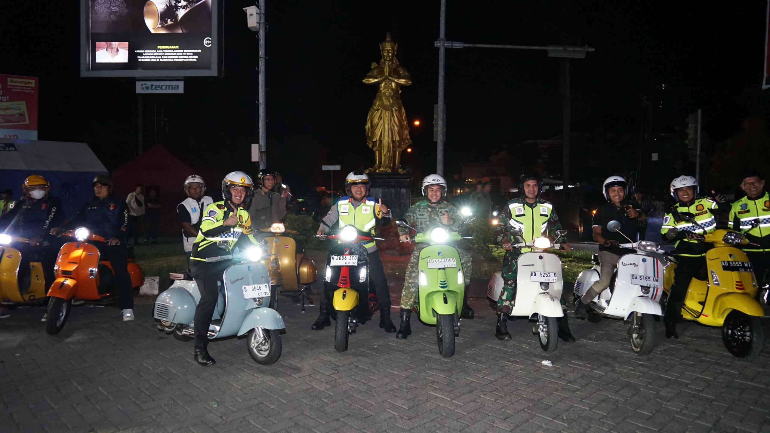 SUKOHARJO – Jajaran TNI dan Polri di Kabupaten Sukoharjo menggelar patroli bersama dengan cara unik menggunakan sepeda motor Vespa untuk memastikan keamanan dan kenyamanan masyarakat menjelang pergantian Tahun Baru 2026, Rabu (31/12/2025) malam.