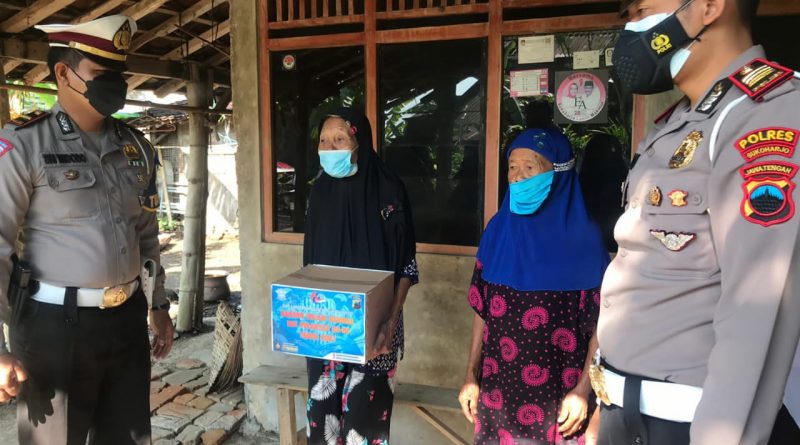 Peringati Hari Lalu Lintas Bhayangkara ke 66, Satlantas Polres Sukoharjo Bagi-Bagi Sembako dan Masker
