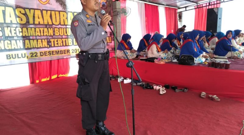 Polres Sukoharjo – Kabag Sumda Polres Sukoharjo AKP Joko Waluyono Amd.,S.H., M.H. mewakili Kapolres Sukoharjo AKBP Iwan Saktiadi S.I.K., M.H., M.Si memberikan Sambutan Dalam Acara Tasyakuran Pilkades Kecamatan Bulu 2018 berjalan Aman Tertib dan Kondusif bertempat di Halaman Mapolsek Bulu Sukoharjo, Sabtu ( 22/12 ).