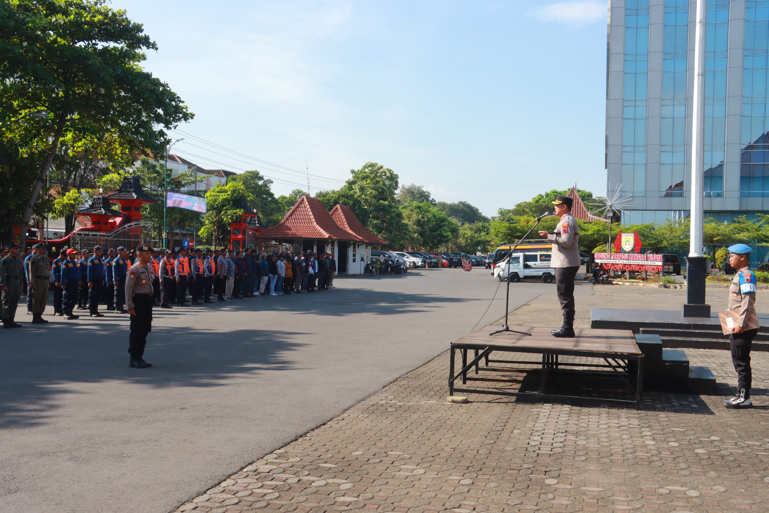 Latihan tersebut dipimpin langsung oleh Kapolres Sukoharjo AKBP Anggaito Hadi Prabowo, S.H., S.I.K., dan diikuti oleh jajaran Pejabat Utama (PJU) Polres Sukoharjo, personel Kodim 0726/Sukoharjo, Dalmas, tim negosiator, serta unsur gabungan dari Satpol PP, Damkar, dan Dinas Perhubungan Kabupaten Sukoharjo.