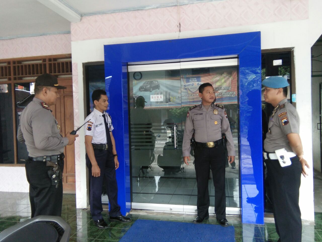 Sementara, dari pihak perbankan yang wakili Satuan Pengamanan BRI Unit Tiyaran menyampaikan ucapan terimakasihnya kepada Waka Polsek Bulu Iptu Lasimin, beserta jajarannya atas kunjungannya.